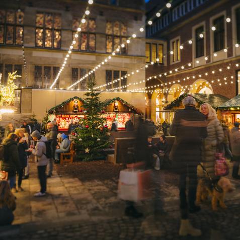 Glühweinduft am historischen Rathaus in Münster, Spielzeug, Schmuck und hochwertiges Kunsthandwerk: All das zeichnet die Atmosphäre des größten Weihnachtsmarkts in Münster aus. In 2025 verzaubert er vom 24. November bis zum 23. Dezember wieder rund eine Million Besucher aus dem In- und Ausland.